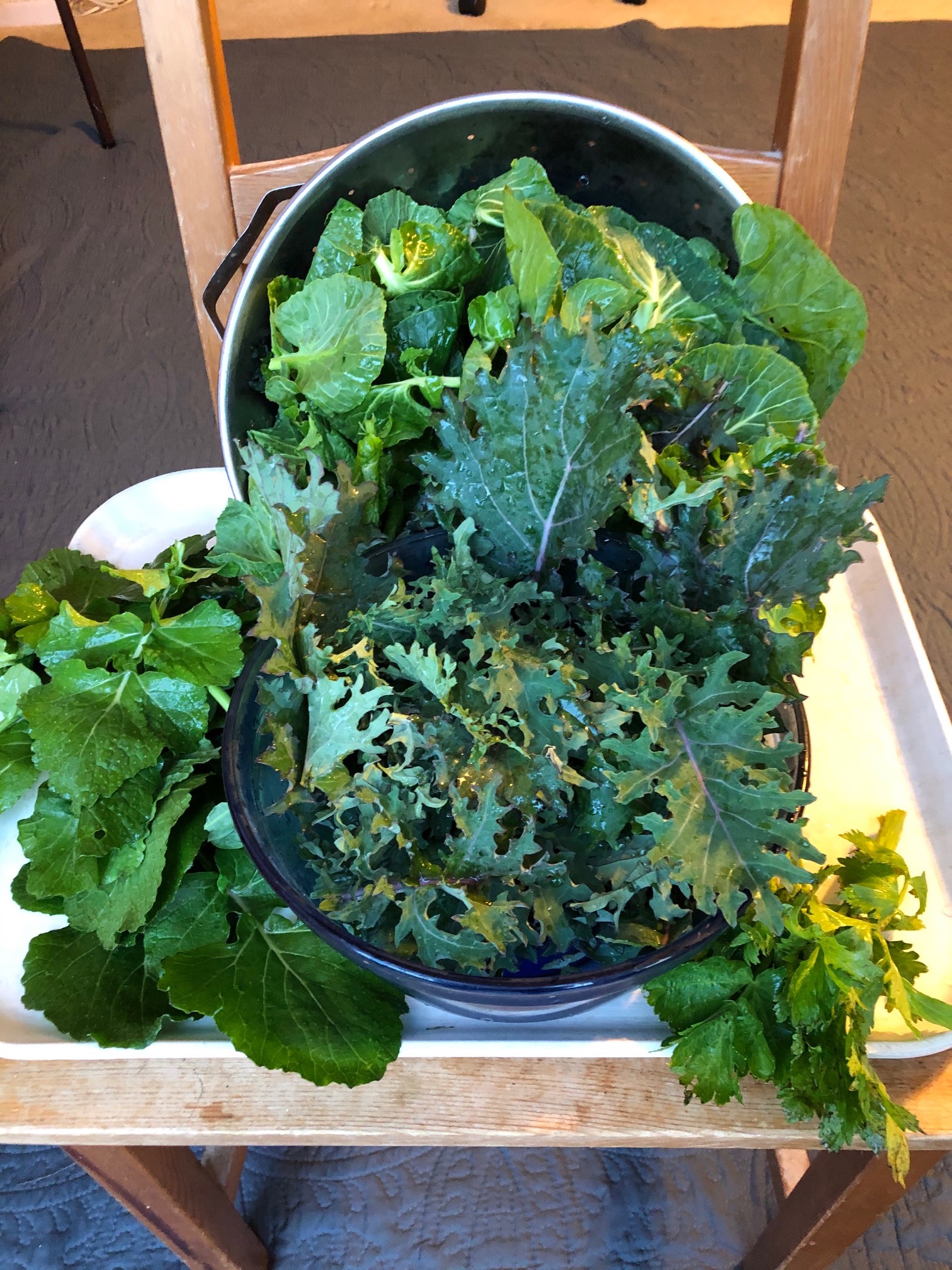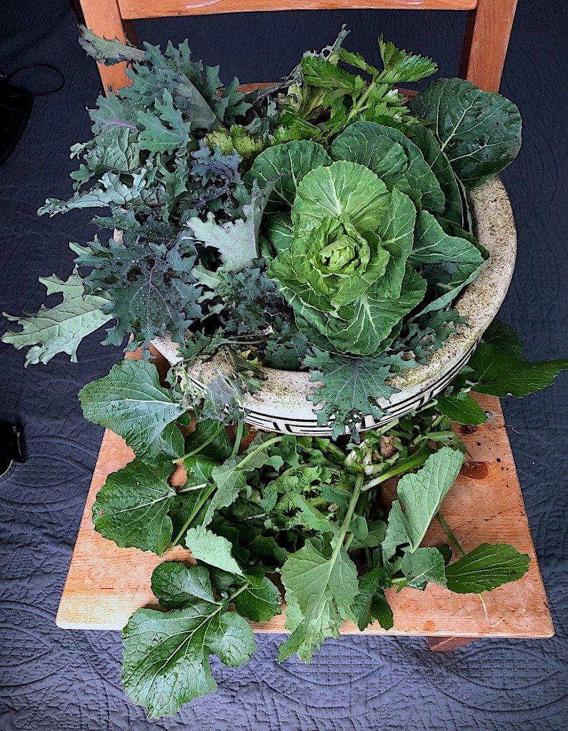 Here are some of the greens, in Captain’s flower pot.