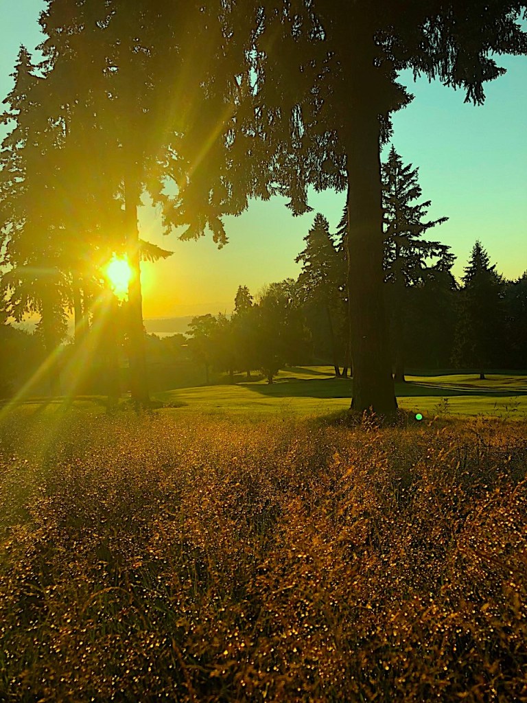 It’s helpful to stay active during the cool hours; this morning at 6:00 I walked down the street to photograph the sun rising over a dewy field of grass under the tall trees. Then before sunrise and after sundown, there’s drinking water to buy 2.5 blocks away at the triple-filtering machine in the grocery parking lot. It’s the best water available for only 40 cents a gallon, five trips a week at 22 minutes per trip. Then I’ve been hauling every bucket of wash water down 42 steps from the fourth floor and around the corner to the garden, about 16 pounds for two gallons at 8 minutes per trip. The leafy greens and sweet potatoes are in peak good health and good looks; watering them takes at least 10 buckets, a total of 80 minutes or one hour 20 minutes of stairs in a day. Food prep is at 5:00 am or 11:00 pm, so that means toting wash water downstairs at all hours. (Even at midnight it’s a lively neighborhood. Teenagers hang out at the picnic table, dogs need walking, the smokers are on night watch in a companionable klatch, and there is always some Wing Family paragon out gardening with a flashlight.)