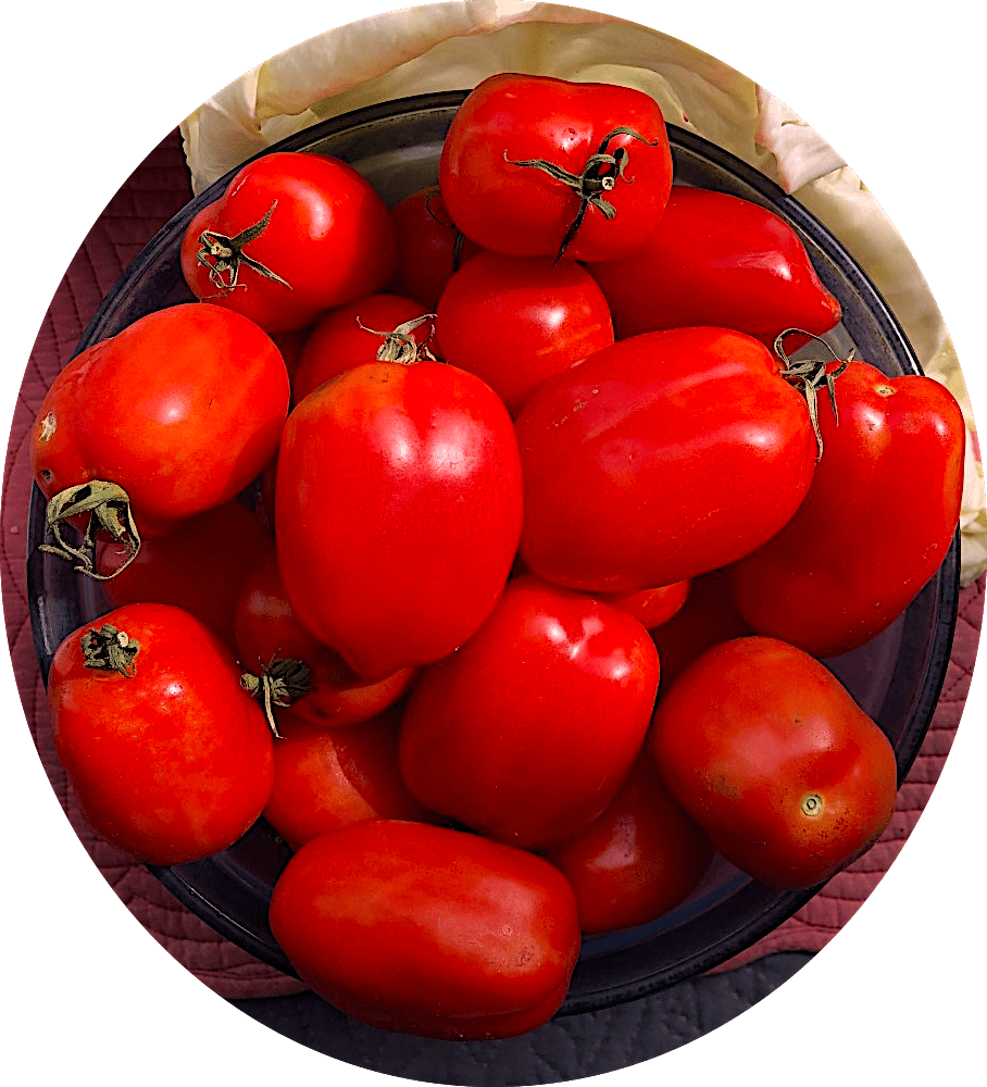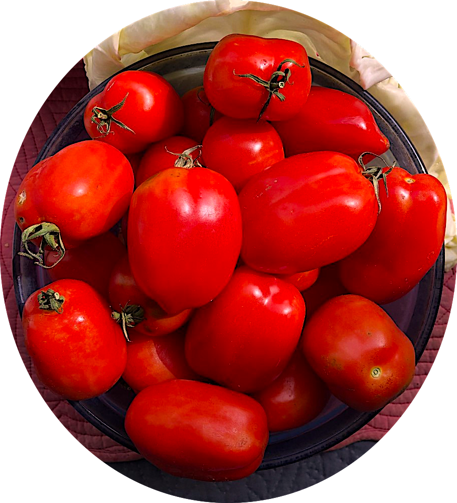 My own Roman tomatoes are still growing outdoors. But saving the Roman seeds doesn’t seem worthwhile. Romans are compact and narrow like plum tomatoes, but with a more blocky high-shouldered shape. My guess is that they were bred for shipment and display. They are excellent producers, with big clusters growing and ripening every day. Their color and gloss are attractive. They keep for a long time, hold their shape, and are durable for transport, with thick skins and plenty of that frosty/sparkly mealy outer layer that doesn’t have much taste. They would travel well and display well in a store, but don’t pack a lot of flavor. Of course, that might be all my fault; perhaps they didn’t get the nutrients that they needed.