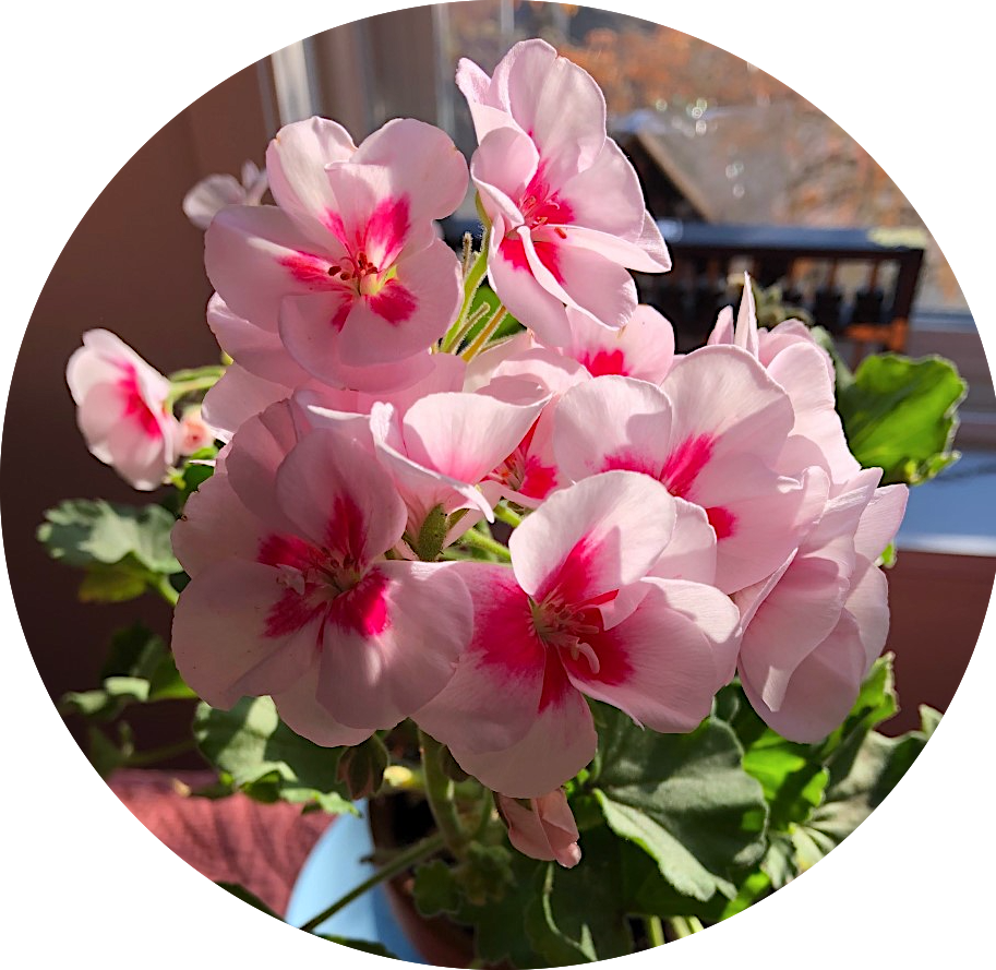 Just for the record: this plant is not stolen. Our building management said I could dig up a geranium from their planter and take it indoors out of the frost. Here is how it looks now.