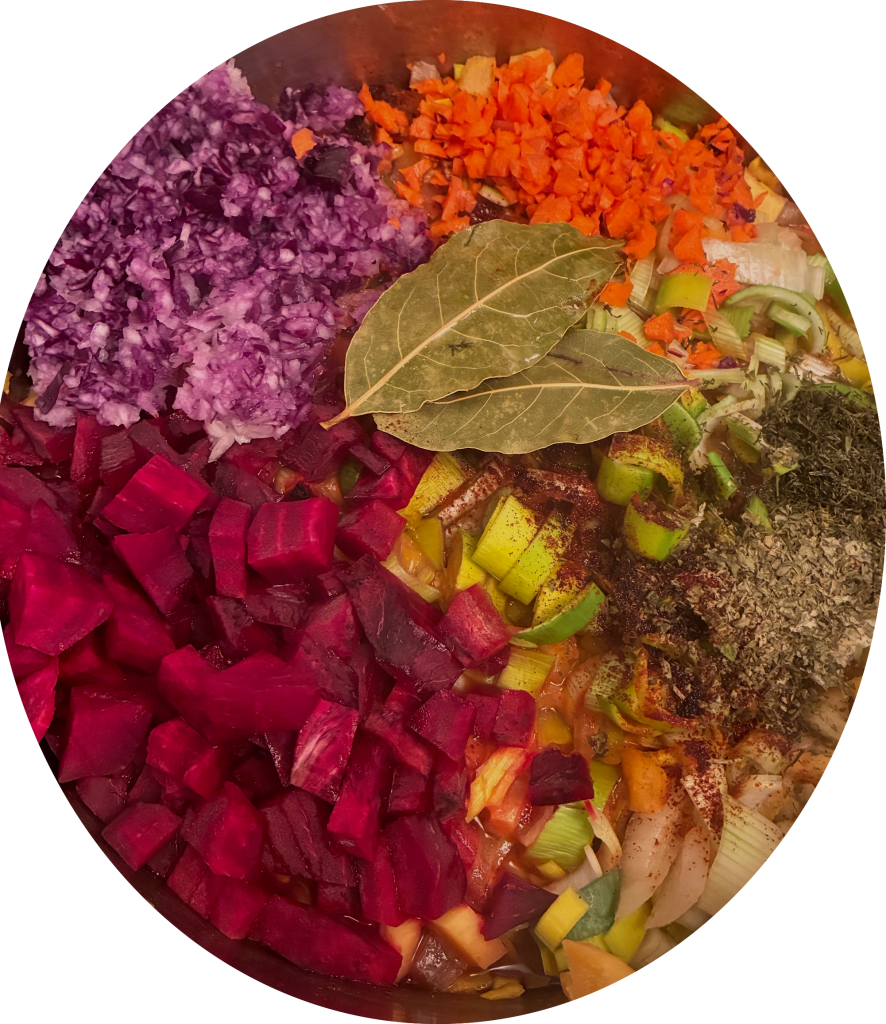After toting the food home, as a rest break I watched a Mull Monastery cooking video on YouTube, with Father Seraphim Aldea and Mother Abbess Ita. If you would like to watch two lovable monastics in the kitchen, you can search their channel for “When I was a kid in Communist Romania: cooking stew and remembering our childhood.” This hearty chunky stew is meant to fill in wintertime comfort and flavor chimes in their usual monastic diet, which includes little meat and quite possibly no meat at all.