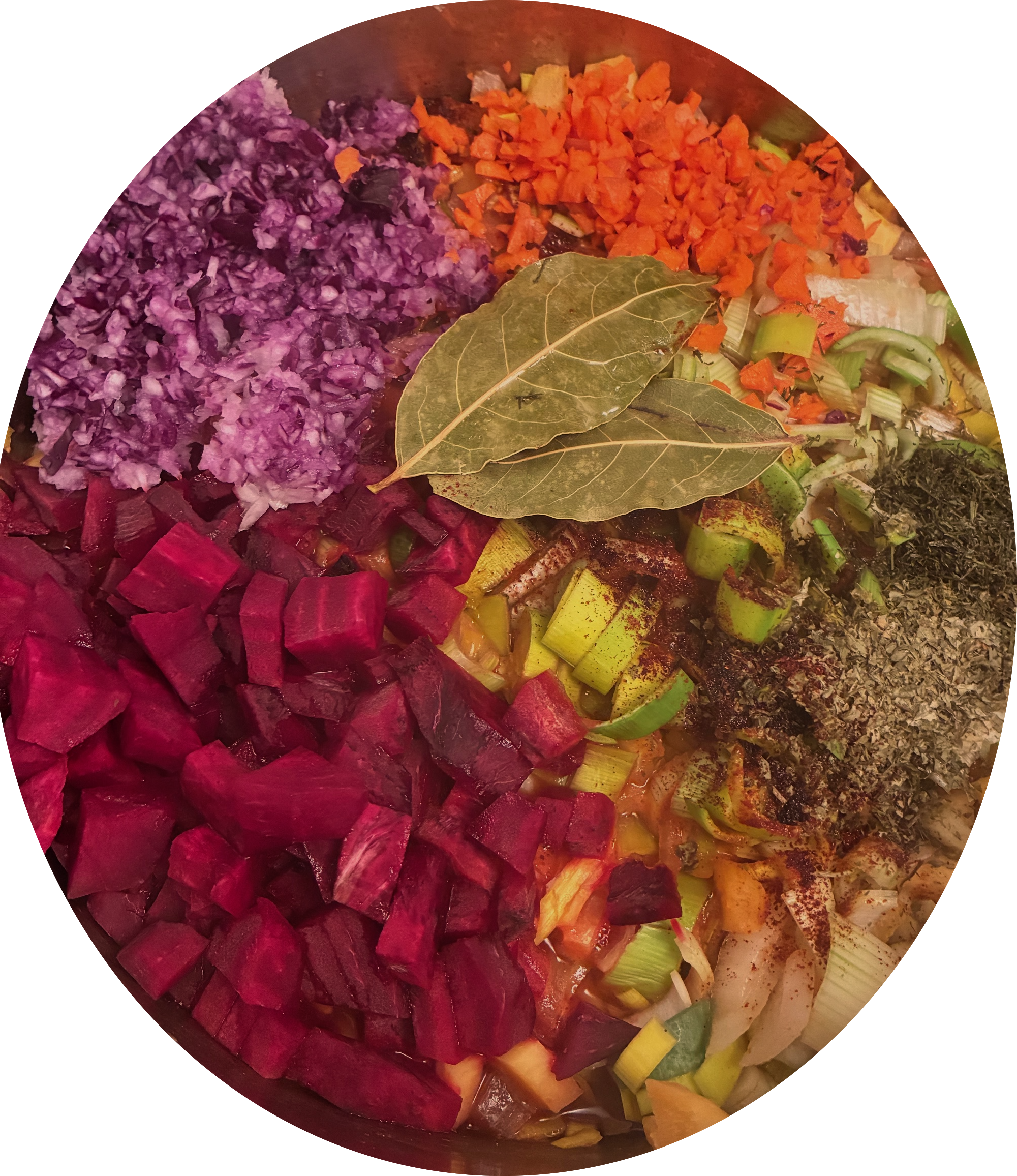 After toting the food home, as a rest break I watched a Mull Monastery cooking video on YouTube, with Father Seraphim Aldea and Mother Abbess Ita. If you would like to watch two lovable monastics in the kitchen, you can search their channel for “When I was a kid in Communist Romania: cooking stew and remembering our childhood.” This hearty chunky stew is meant to fill in wintertime comfort and flavor chimes in their usual monastic diet, which includes little meat and quite possibly no meat at all.