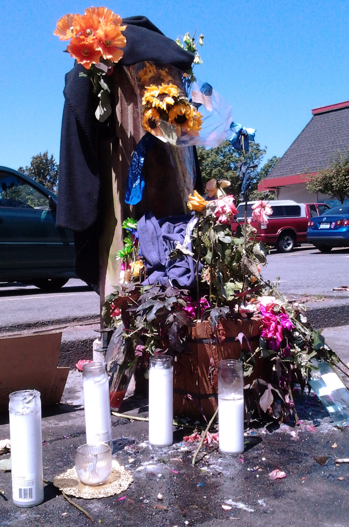 Two offers, right at my feet! Who could pass up an adventure like that? I cleaned off the flyers, ironed them between paper towels, and put them in clear page protectors backed with cardboard so the girls could post them again even in rain. Then I wrote a letter to The Artists congratulating them on their good idea, explaining the difficulty in their marketing distribution scheme, and left it at the door of the address listed on the flyers.